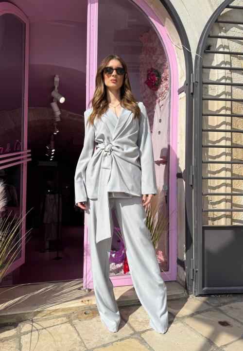 Tailleur con drappeggio in vita e cinta. Taglia unica veste bene dalla XS alla L